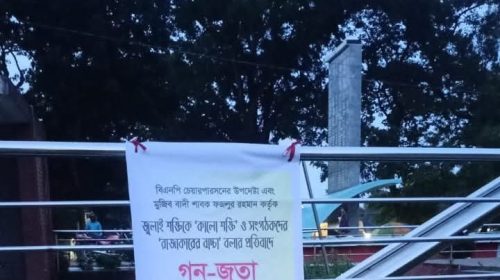 রবিবার (৩ আগস্ট) সকাল ১১টায় শহরের স্বল্প মারিয়া এলাকায় স্থানীয় সচেতন যুবসমাজ ও এলাকাবাসীর উদ্যোগে এই মানববন্ধনের আয়োজন করা হয়।
