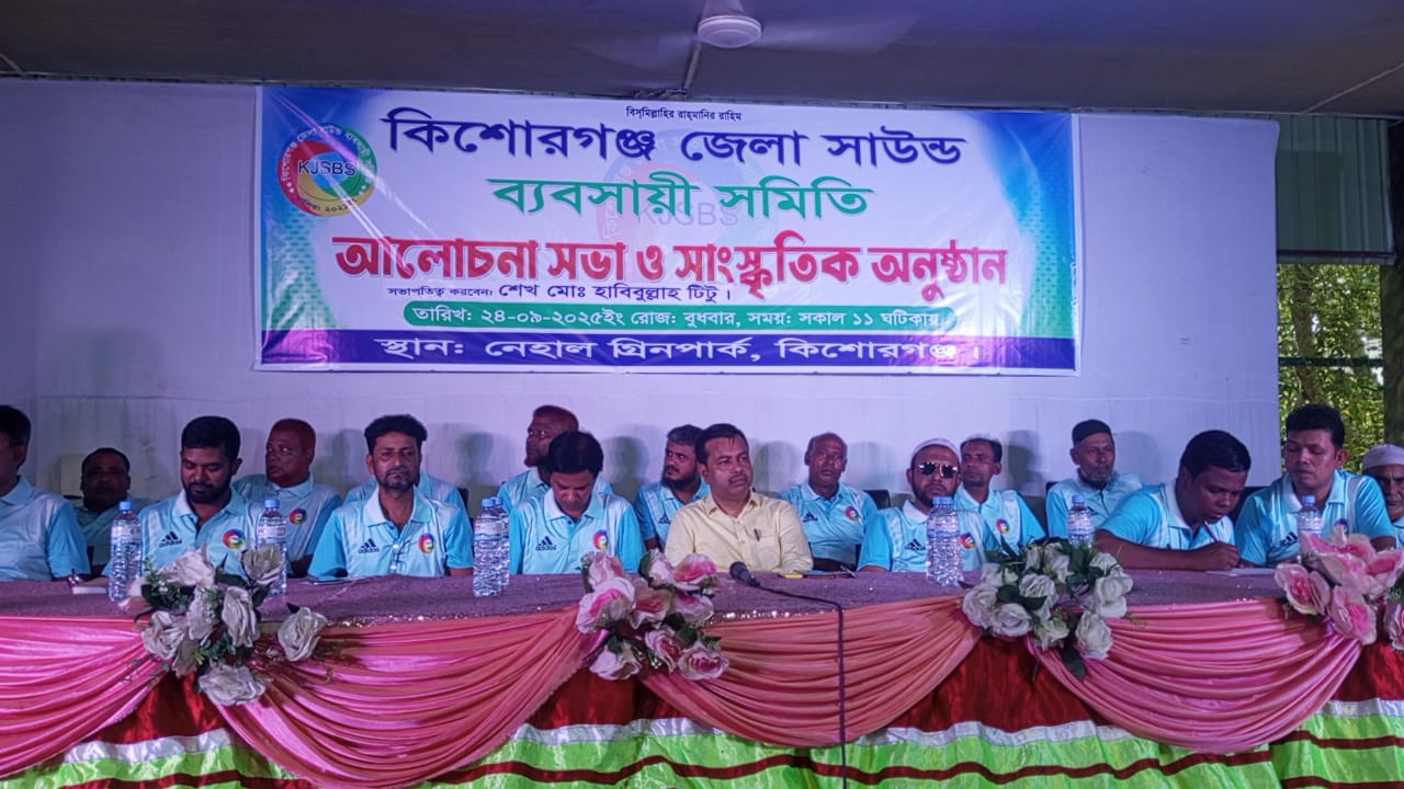 উৎসবমুখর পরিবেশে কিশোরগঞ্জ জেলা সাউন্ড ব্যবসায়ী সমিতির আয়োজনে এক আলোচনা সভা ও সাংস্কৃতিক অনুষ্ঠান অনুষ্ঠিত হয়েছে।