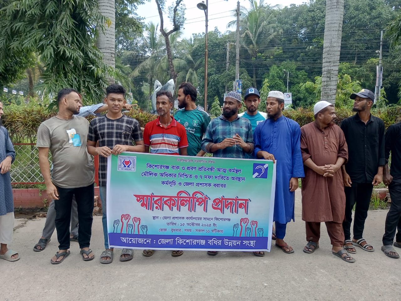 কিশোরগঞ্জ জেলার শ্রম ও বাক প্রতিবন্ধী জনগোষ্ঠীর মৌলিক অধিকার ও সামাজিক নিরাপত্তা নিশ্চিতের দাবিতে ৭ দফা দাবি সম্বলিত স্মারকলিপি জেলা প্রশাসকের নিকট জমা দিয়েছে “কিশোরগঞ্জ শ্রম ও বাক প্রতিবন্ধী উন্নয়ন সংস্থা”।