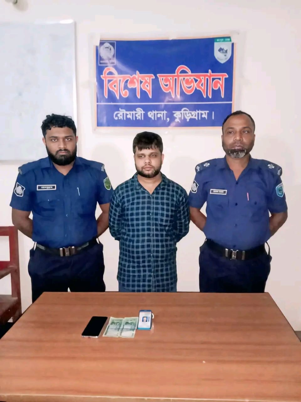পুলিশ জানায়, গোপন সংবাদের ভিত্তিতে রৌমারী থানার অফিসার ইনচার্জ এর নেতৃত্বে বিশেষ অভিযান চালিয়ে তাকে আটক করা হয়। তার দেহ তল্লাশি করে জাল নোট ও প্রতারণায় ব্যবহৃত মোবাইল ফোন উদ্ধার করা হয়।